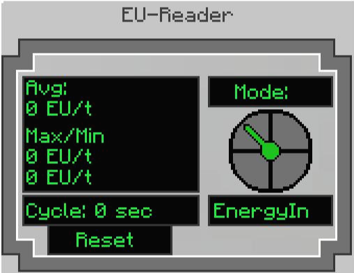 전선이나 기계에 우클릭하여 전력의 흐름이나 전압을 확인할 수 있습니다. 우측 레버를 클릭하여 돌리는 것으로 해당 블럭에 대해 에너지가 들어오는 양EnergyIn > 에너지가 빠져나가는 양EnergyOut > 전압Voltage > 에너지 생산량EnergyGain을 확인할 수 있습니다.