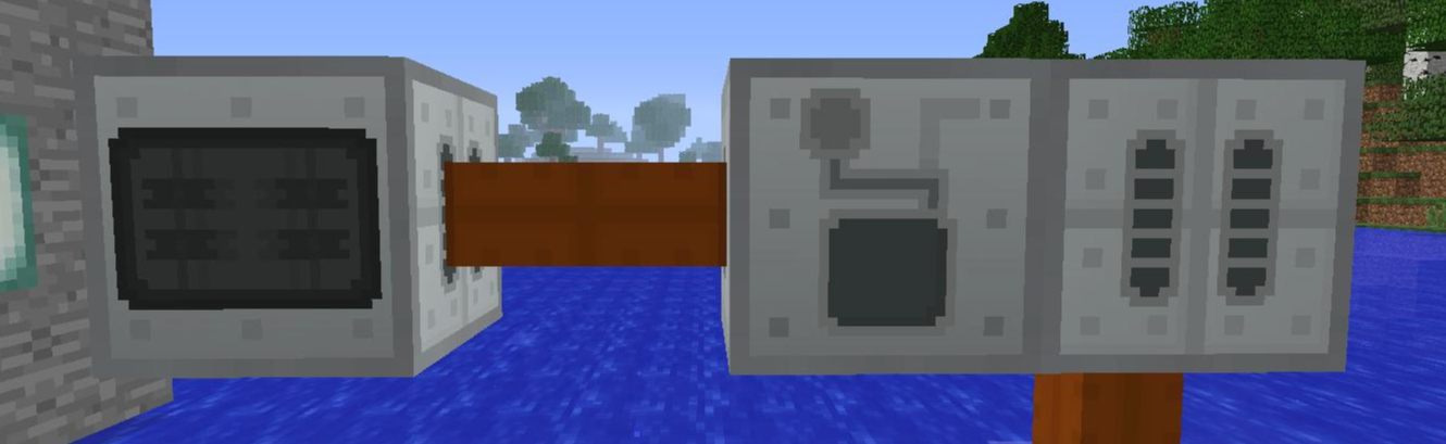이제 탱크에 저장된 물을 다른 곳으로 보내면 되겠습니다. 탱크에 인접한 기계를 설치하고, 그 기계에 유동체 풀링 업그레이드를 넣는 것으로 탱크의 물을 사용할 수 있을 것입니다. 그러나, 그 사이에 파이프를 설치하는 방법은 적용되지 않습니다. 파이프를 사용할 수 없다는 점이 매우 아쉽지만, 탱크 옆에 유동체를 담을 수 있는 기계를 설치한 뒤 그 기계에 파이프를 연결하는 방식으로 해야 합니다. 그 기계 중에서 (그나마) 가장 경제성이 좋은 기계는 다음과 같습니다.