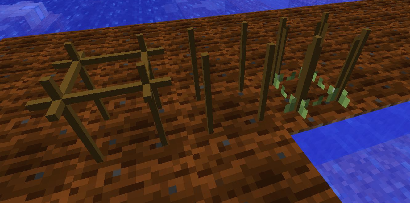비어있는 작물 지지대(크로싱 포함)에는 일정 시간이 지나면 잡초weed가 자라게 됩니다. 잡초는 주변 식물의 성장을 방해하거나 잡초로 변하게 만들며, 경작된 땅을 흙으로 만들고 그 위에 잔디를 생성하기도 합니다. 주기적인 관리가 필요합니다.