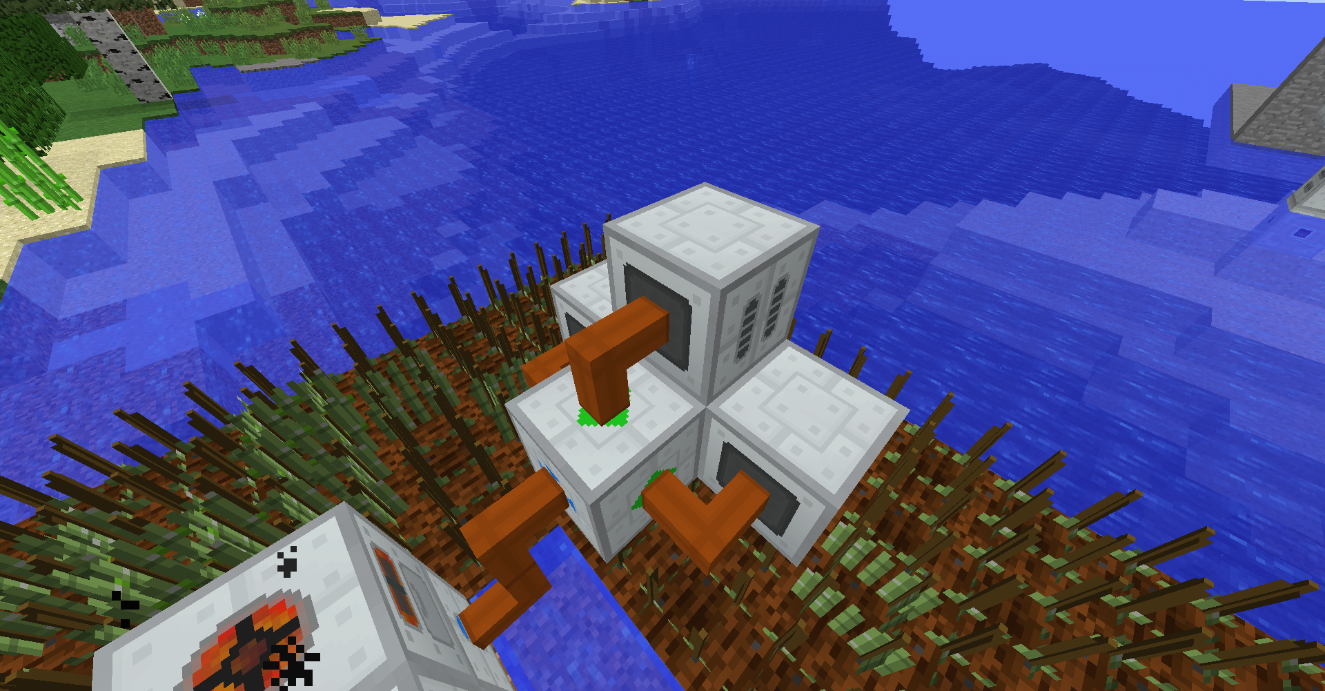 작물은 성장속도가 빠른 사탕수수로 했으며, 사탕수수의 경우 8개의 발효기를 사용하여 발전할 수도 있고, 유동체 발전기에서 나오는 전력을 (펌프/작물 관리기/작물 재배기/분쇄기/유동체,고체 주입기)에 연결하여 무한 동력을 만들 수도 있습니다!