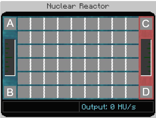 기존 반응실의 GUI와 같으나, 왼쪽에 냉각수 게이지, 오른쪽에 고열 냉각수 게이지가 있습니다.