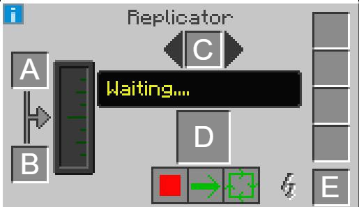 E : 복제기를 충전할 배터리 아이템을 넣는 곳
