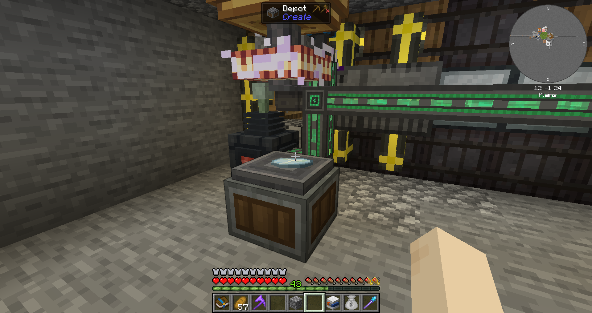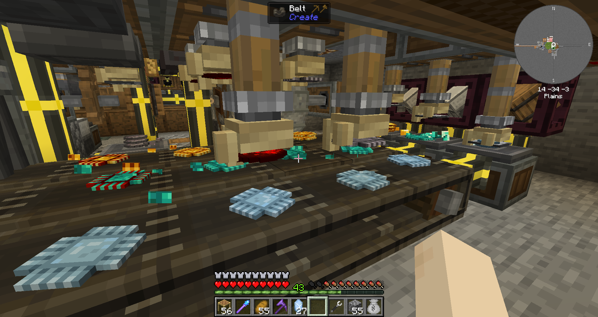 회로가 제작되는 과정입니다. 컨베이어 벨트를 통한 공정이 주는 Create 모드만의 감성이 있습니다.
