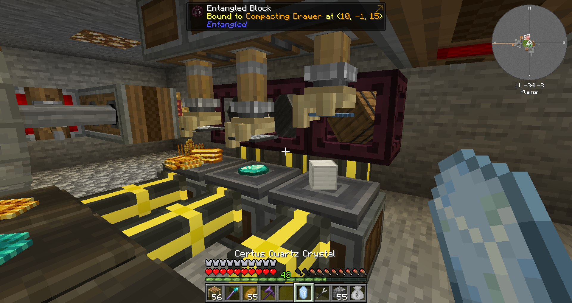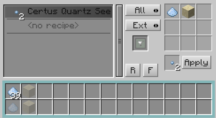 제 다음 계획은 Applied Energistics 2 의 시작이기에, 서투스 석영 및 액정 결정 Fluix Crystal을 제작하기 위해 분쇄 휠을 제작했습니다.