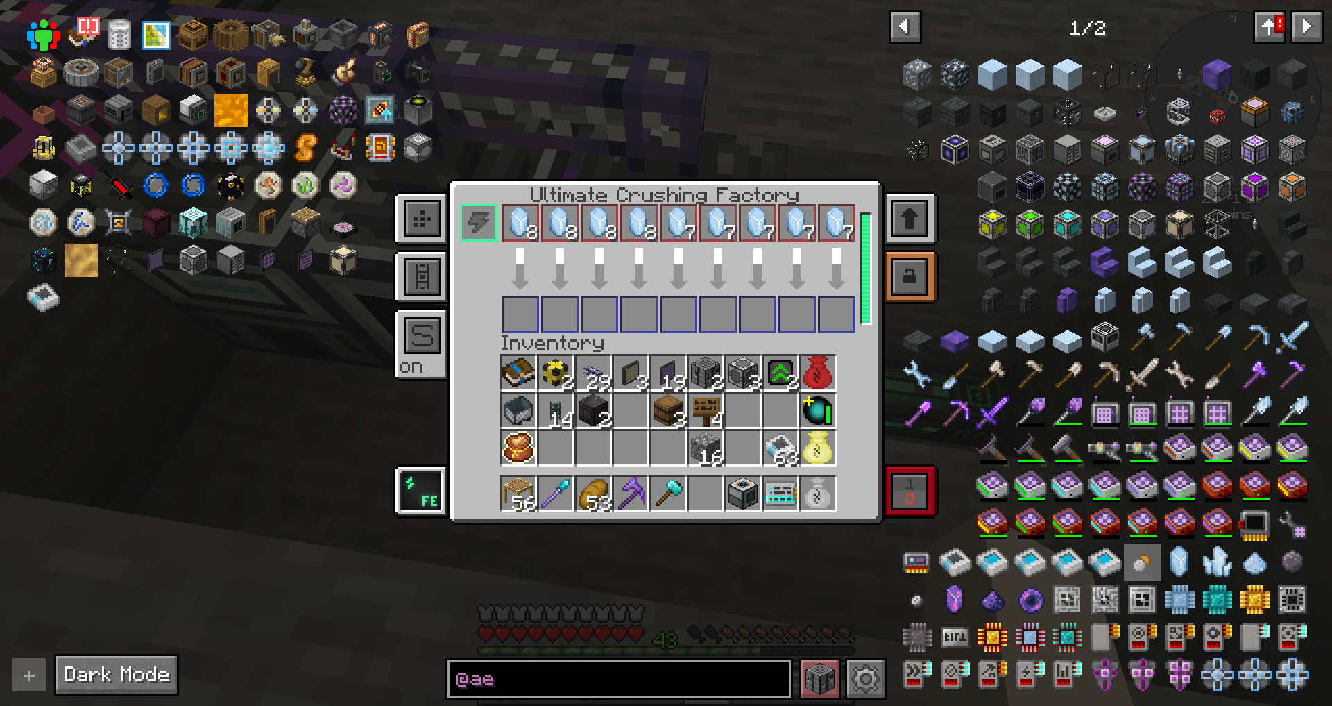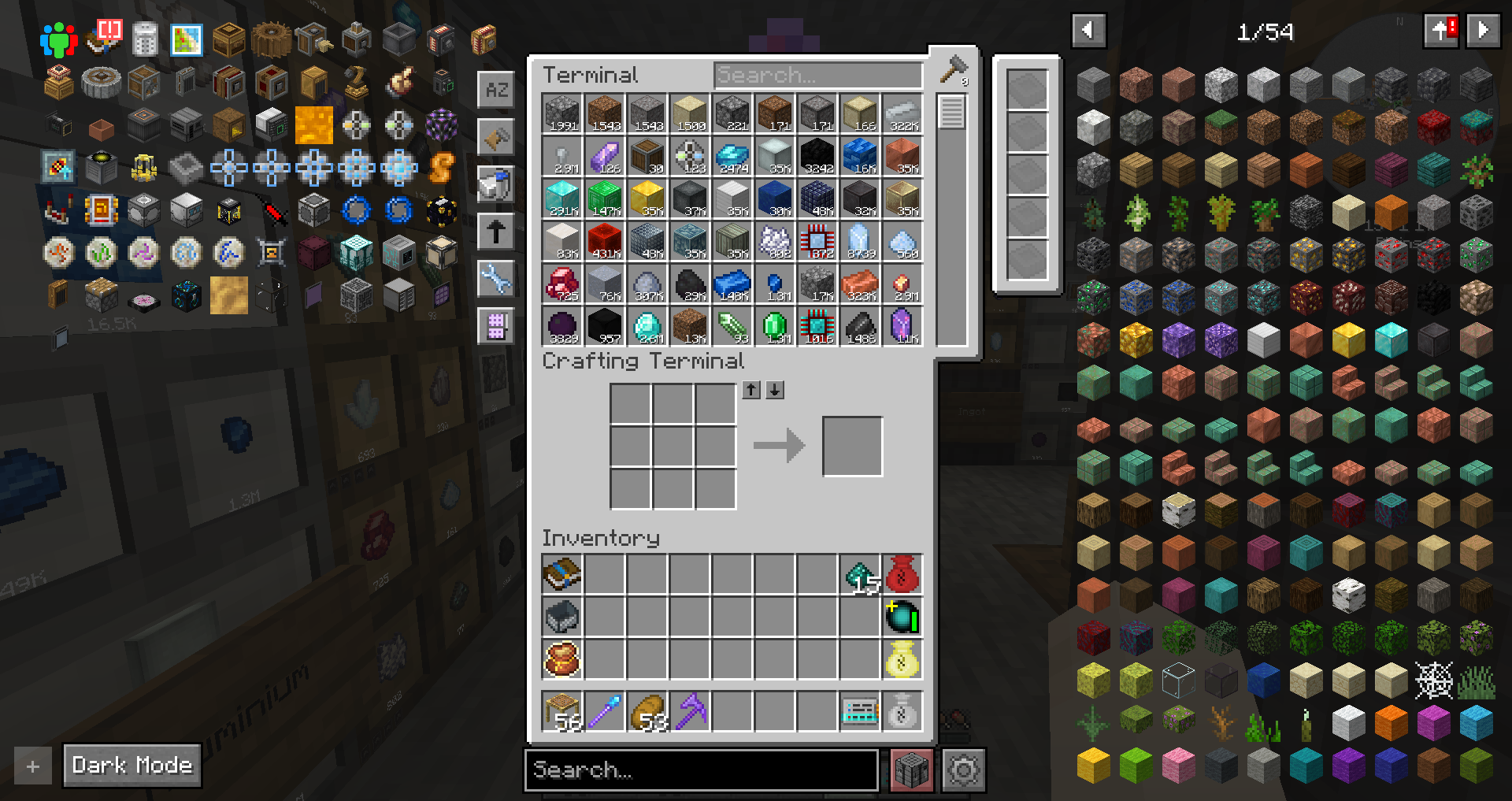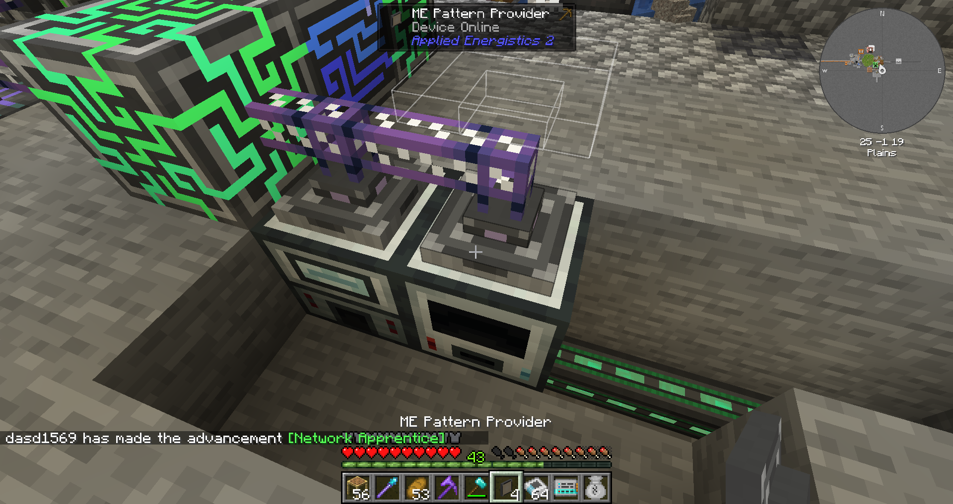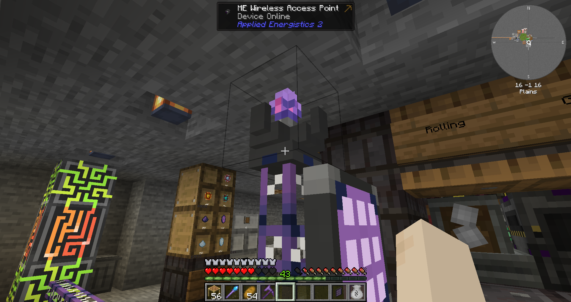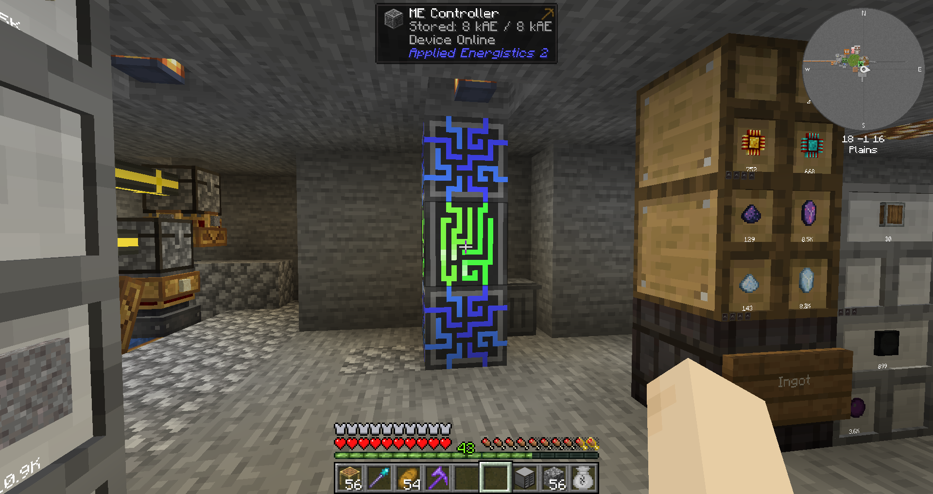 AE2를 시작하여 ME Drive의 무선 접속 및 무선 충전, 패턴을 통한 기계 연결까지 했습니다.
