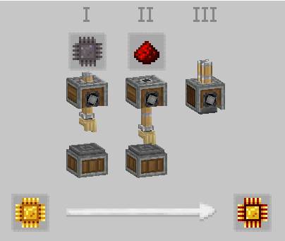 기계 손을 통해 인쇄된 실리콘, 레드스톤, 마지막으로 압착을 해주면 각 재료에 맞는 회로를 얻을 수 있습니다.