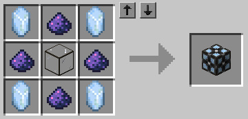 레드스톤, 석영, 충전된 서투스 석영을 물에 던지면 액정 가루 2개가 나오게 됩니다.