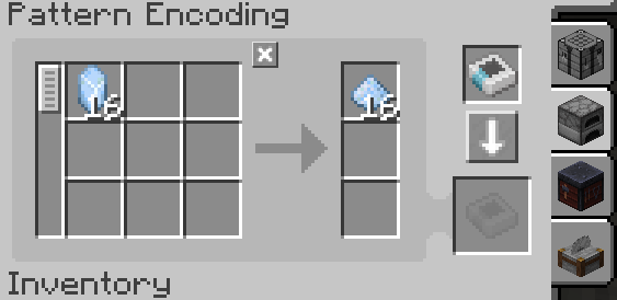 원하는 지점에 기계를 설치 (한 면에서 입력/출력이 동시에 가능한 기계)하고, ME 패턴 제공기를 다시 조합하여 판으로 만든 뒤 기계에 연결합니다.