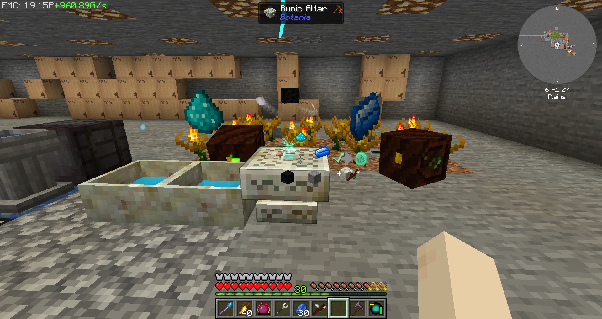 룬 제단에 필요 아이템들을 우클릭하여 넣어준 뒤, 제단 위로 생명의 돌을 던져주고 숲의 지팡이로 우클릭하여 룬을 제작할 수 있습니다. 이때 마나 공급이 필요합니다.