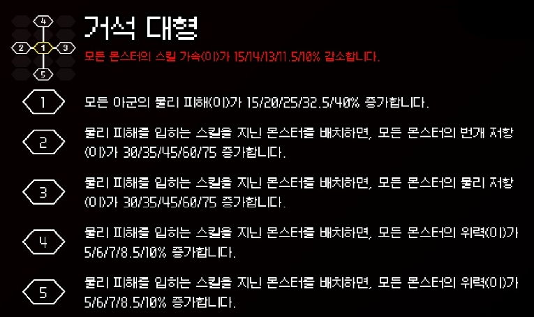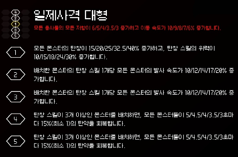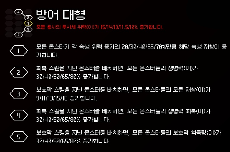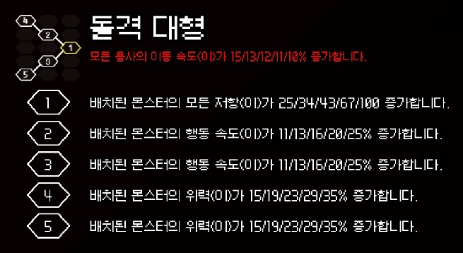 | 지휘소 강화 | 4회 : 10 > 25 > 40 > 60 |