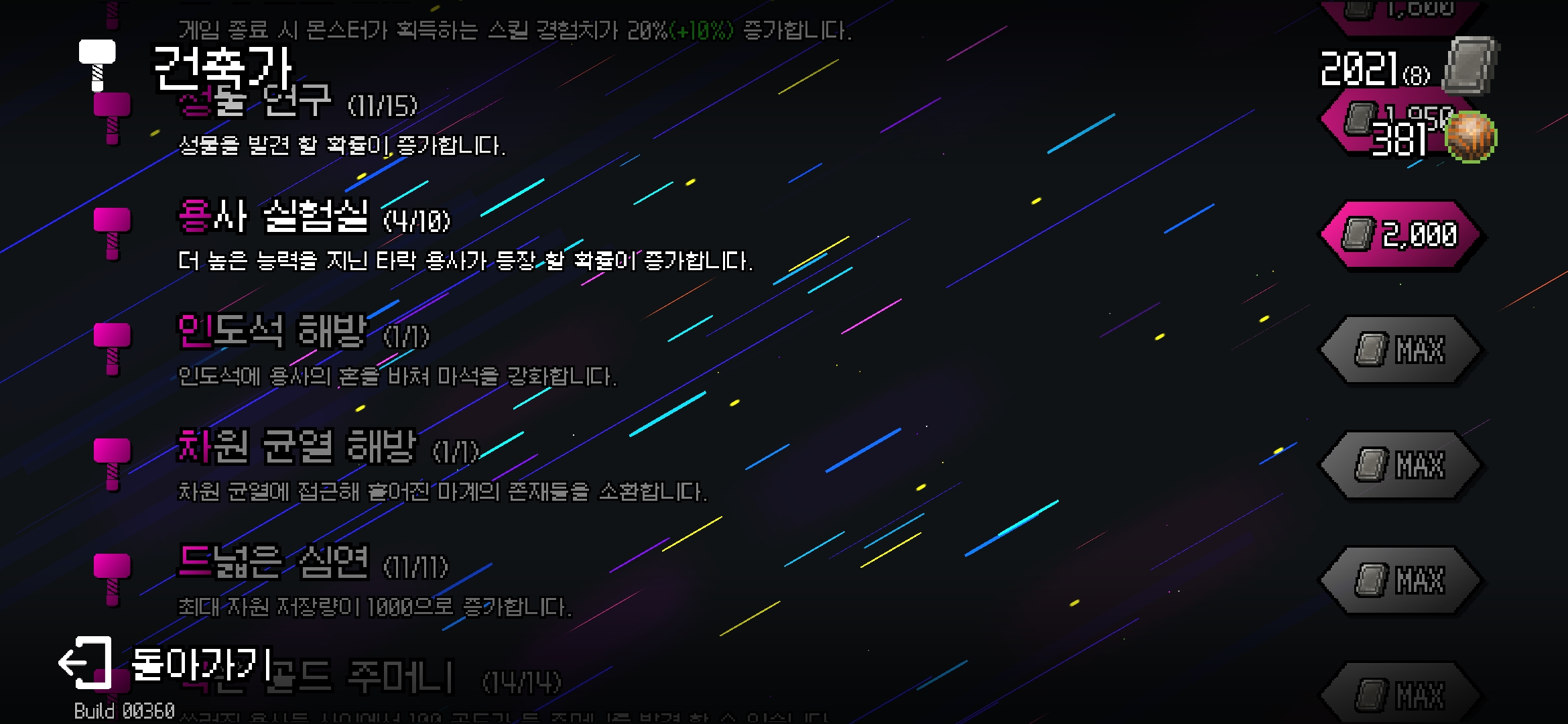 가장 많이 이용하게 될 건축가 / 차원 균열을 통한 몬스터 강화 / 인도석 / 그 외 순서대로 설명해보고자 합니다.
