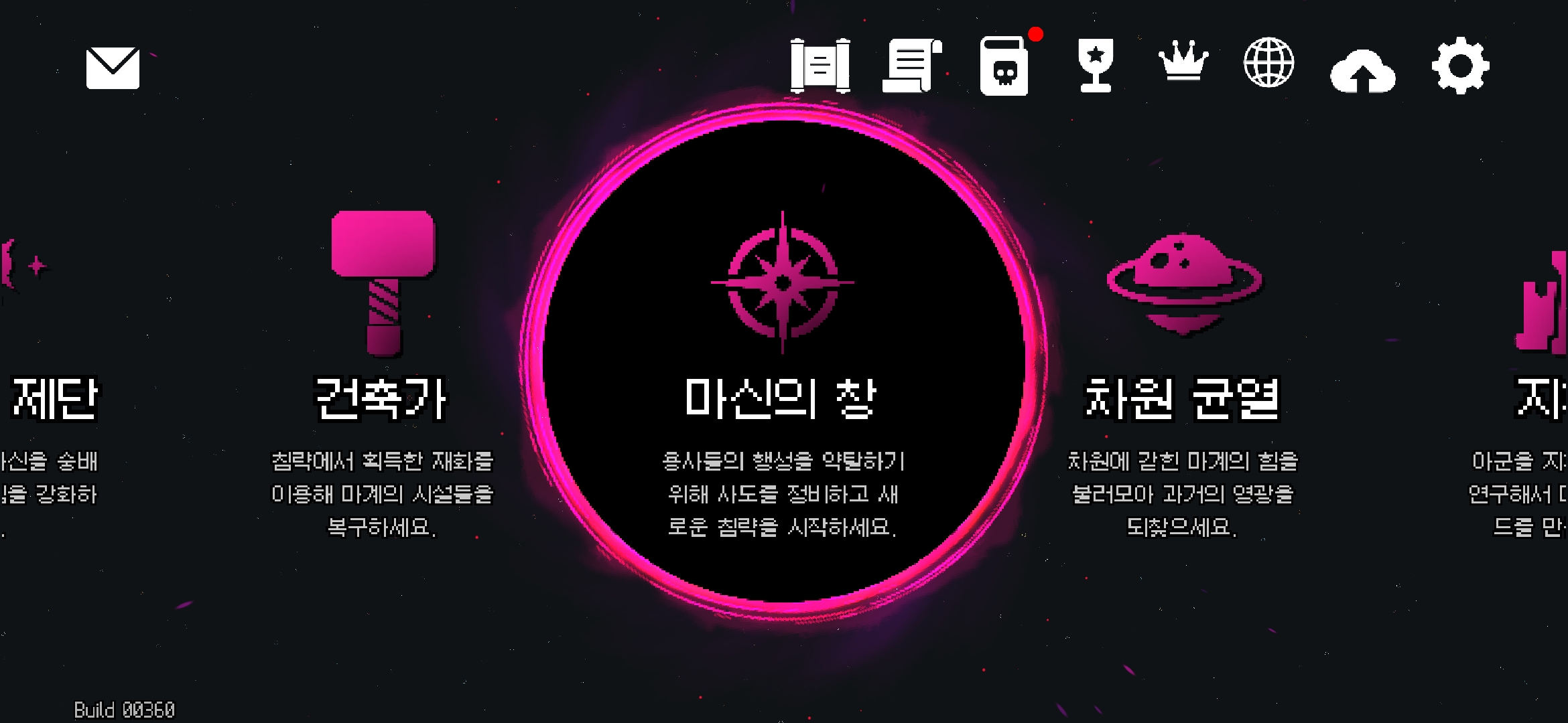 해금할 수 있는 컨텐츠는 인도석 / 타락 / 도감 / 대형 / 성물 / 유적입니다.
