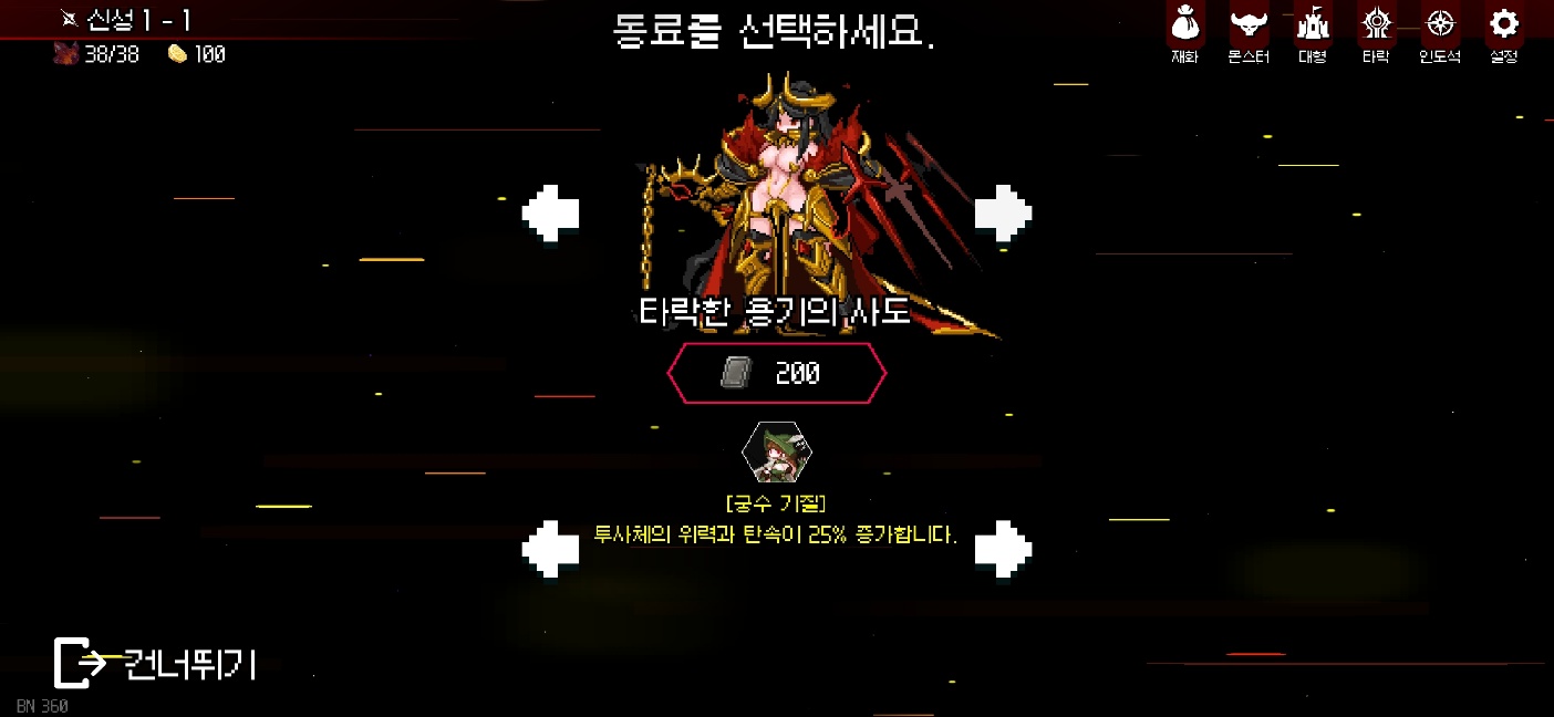 몬스터, 용사, 타락, 마신의 축복, (전설)장비, 대형, 성물을 확인할 수 있습니다.