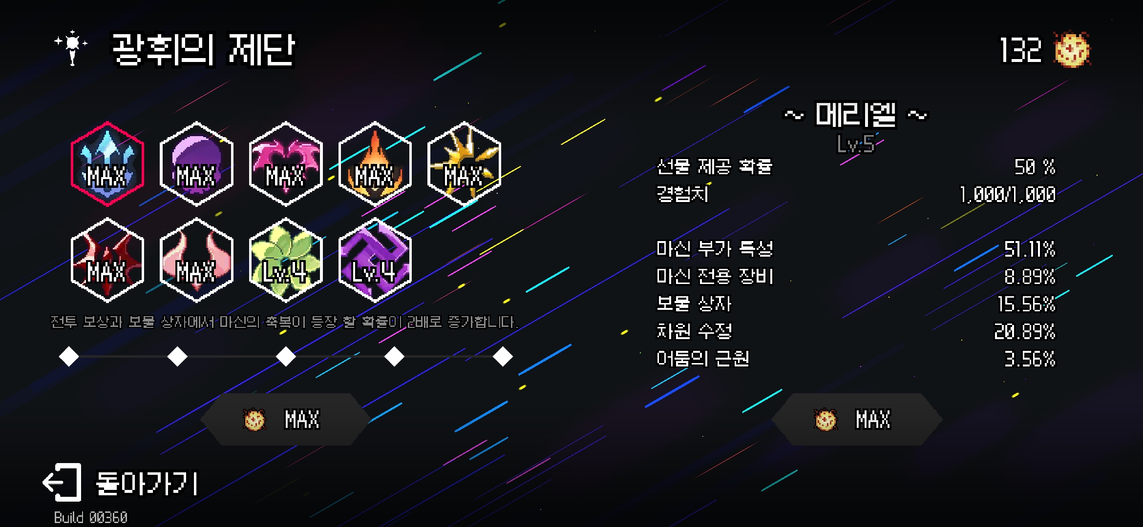 광휘의 보주를 사용하여 각 마신의 축복이 등장할 확률 및 추가 재화(선물) 등장 확률을 높일 수 있습니다.