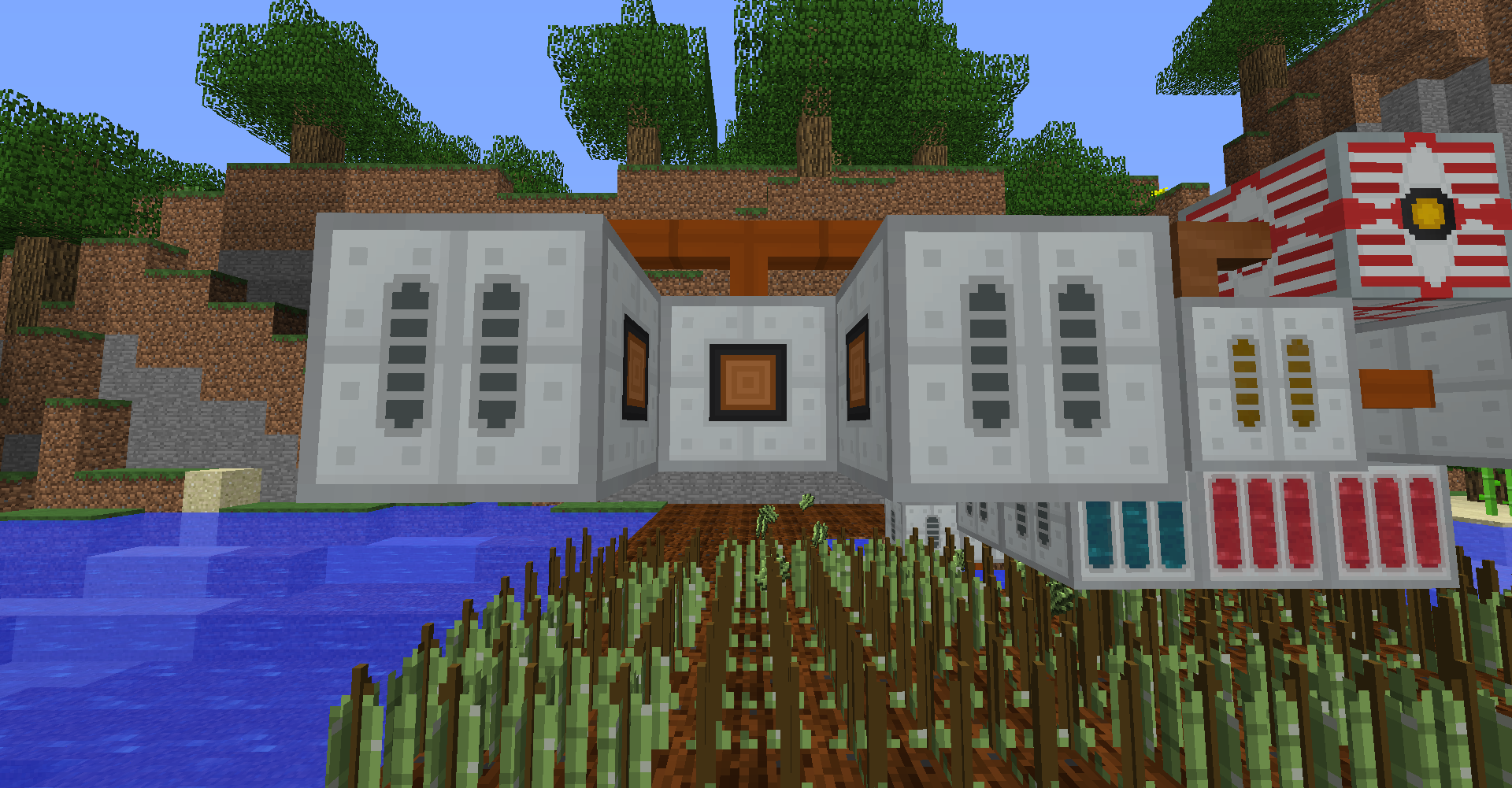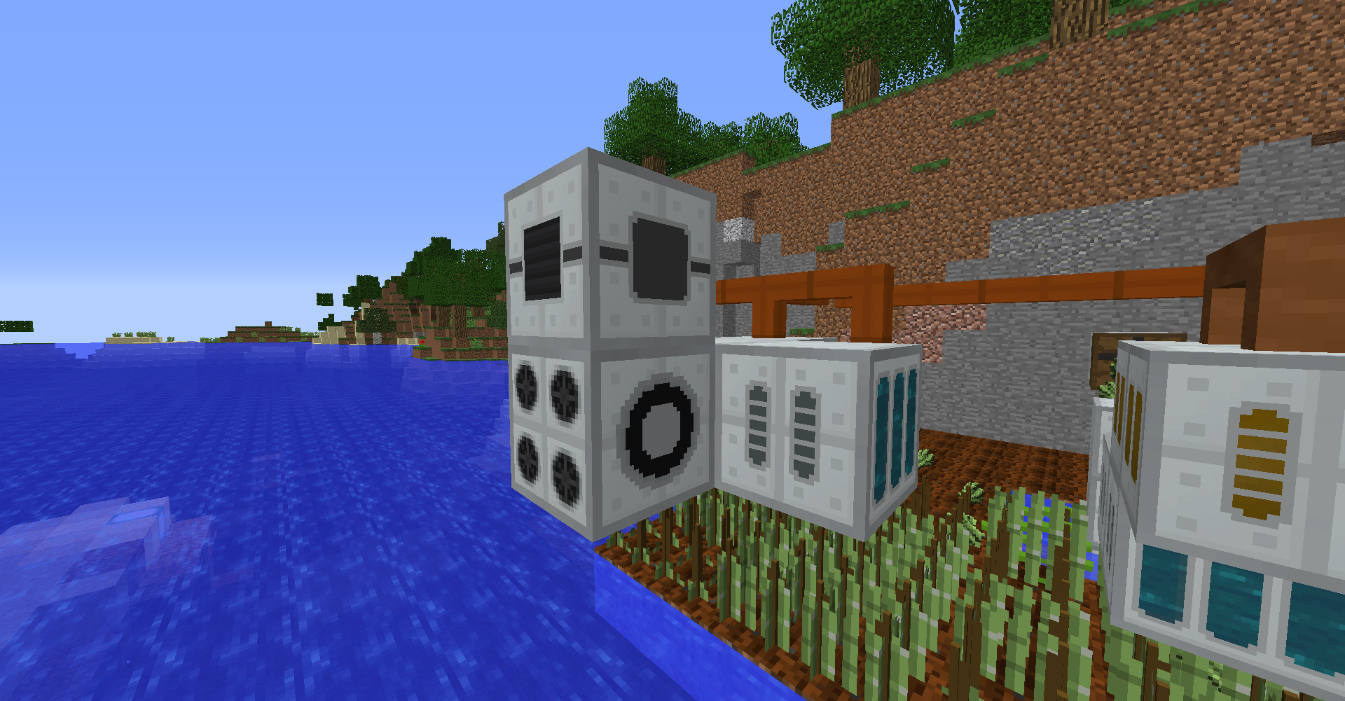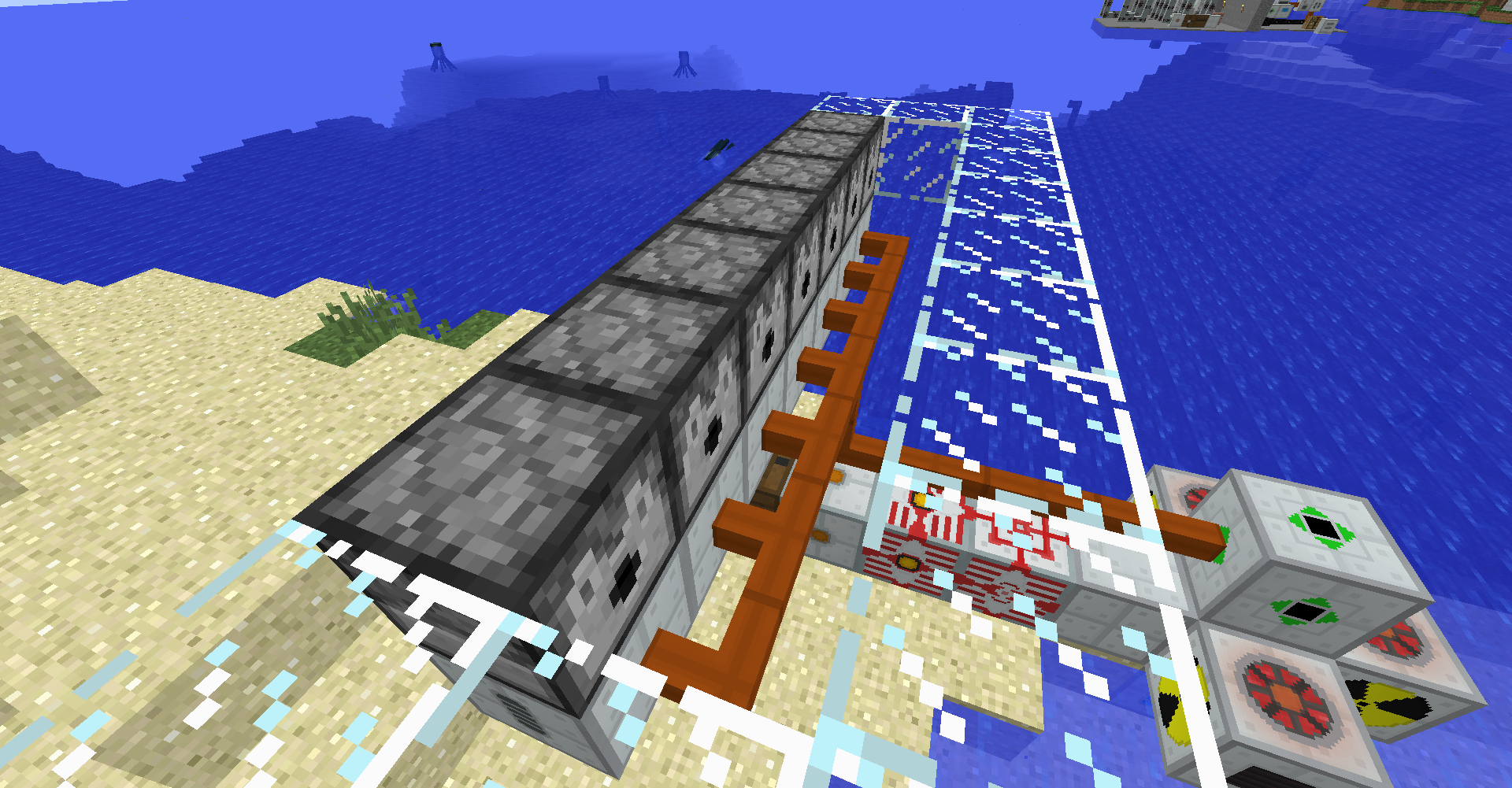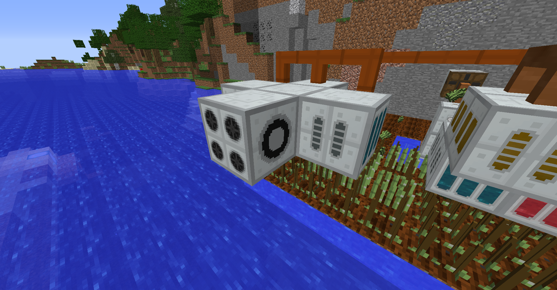 바이오 발전기에서 사용되는 연료인 사탕수수의 생산량이 소모량보다 높아서 위와 같이 아이템이 나뒹굴 때가 발생합니다. 작물 재배기에 든 이젝터를 가능한 방향으로 바꾼 뒤, 재활용기recycler를 옆에 두는 것으로 초과 생산량을 줄일 수 있긴 합니다.