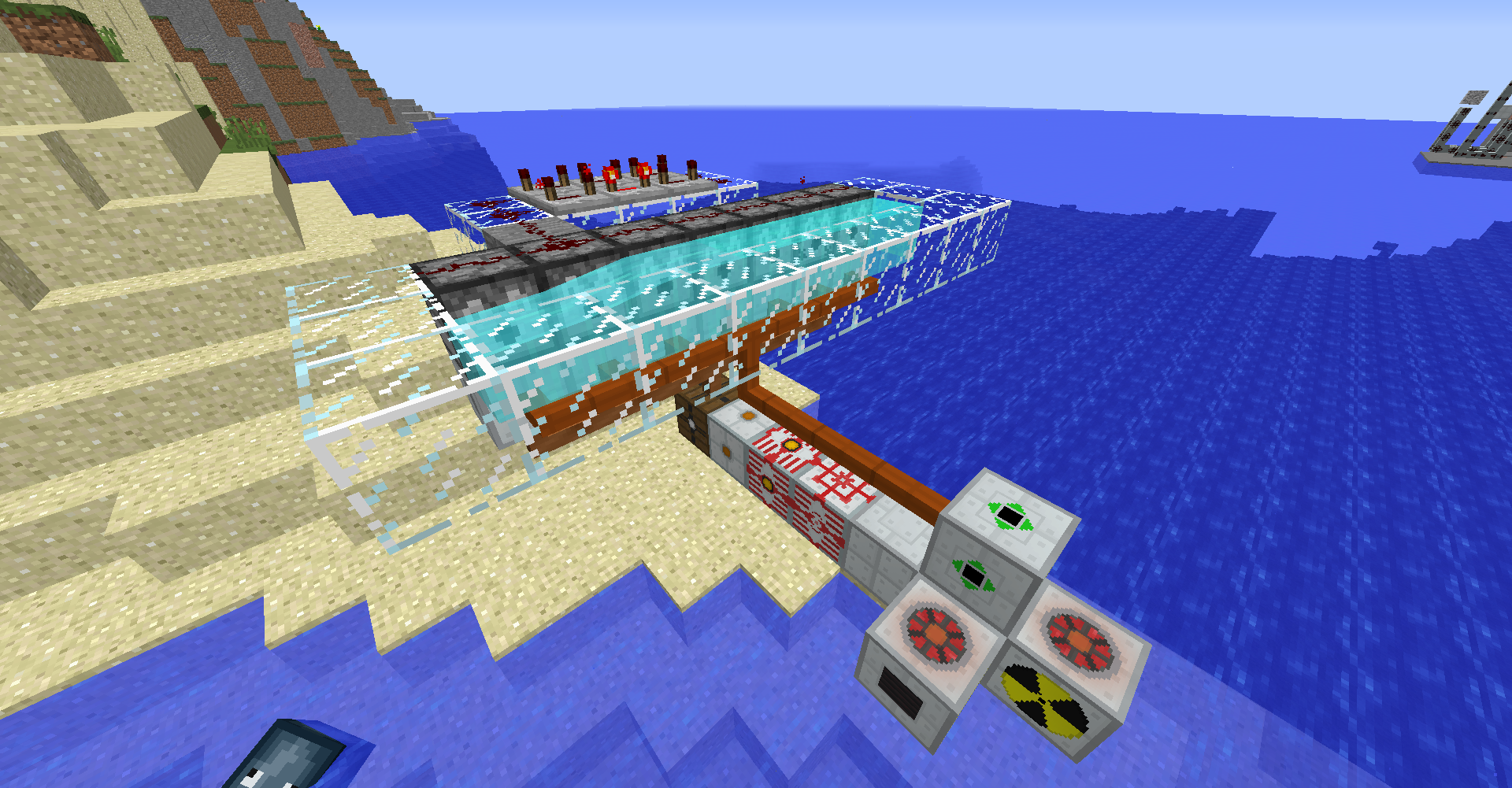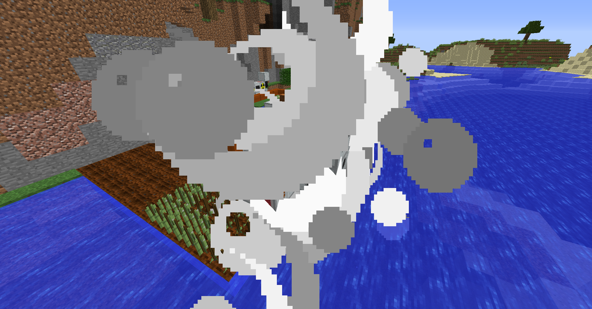 만약 증기 보일러에 1,200mB 이상의 물이 들어간 상태라면, 위 그림과 같이 폭발 이펙트가 나오면서 물이 증발하는 소리가 들리게 될 것입니다. 주변 블럭에 피해를 입히진 않으나, 엔티티에게 데미지를 입힙니다.