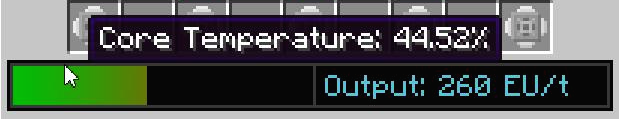 연료봉이 핵 반응로 내에 있고 레드스톤 신호가 입력되면 연료를 소모하며 발전을 시작할 것입니다. 발전량은 다음과 같습니다.