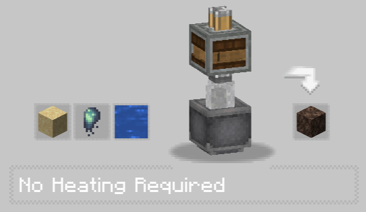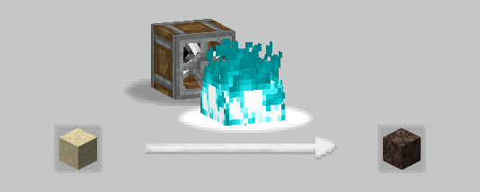 대야 위로 혼합기를 설치한 후, 물 양동이로 채워준 뒤 모래와 Mob soul을 넣으면 영혼모래가 제작됩니다.