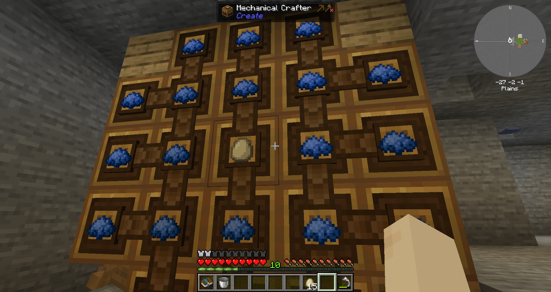 황동 제작으로 더 많은 Create 기기들을 제작하기 위함도 있지만, 자동화의 핵심인 아이템 수송기를 제작을 우선했습니다.