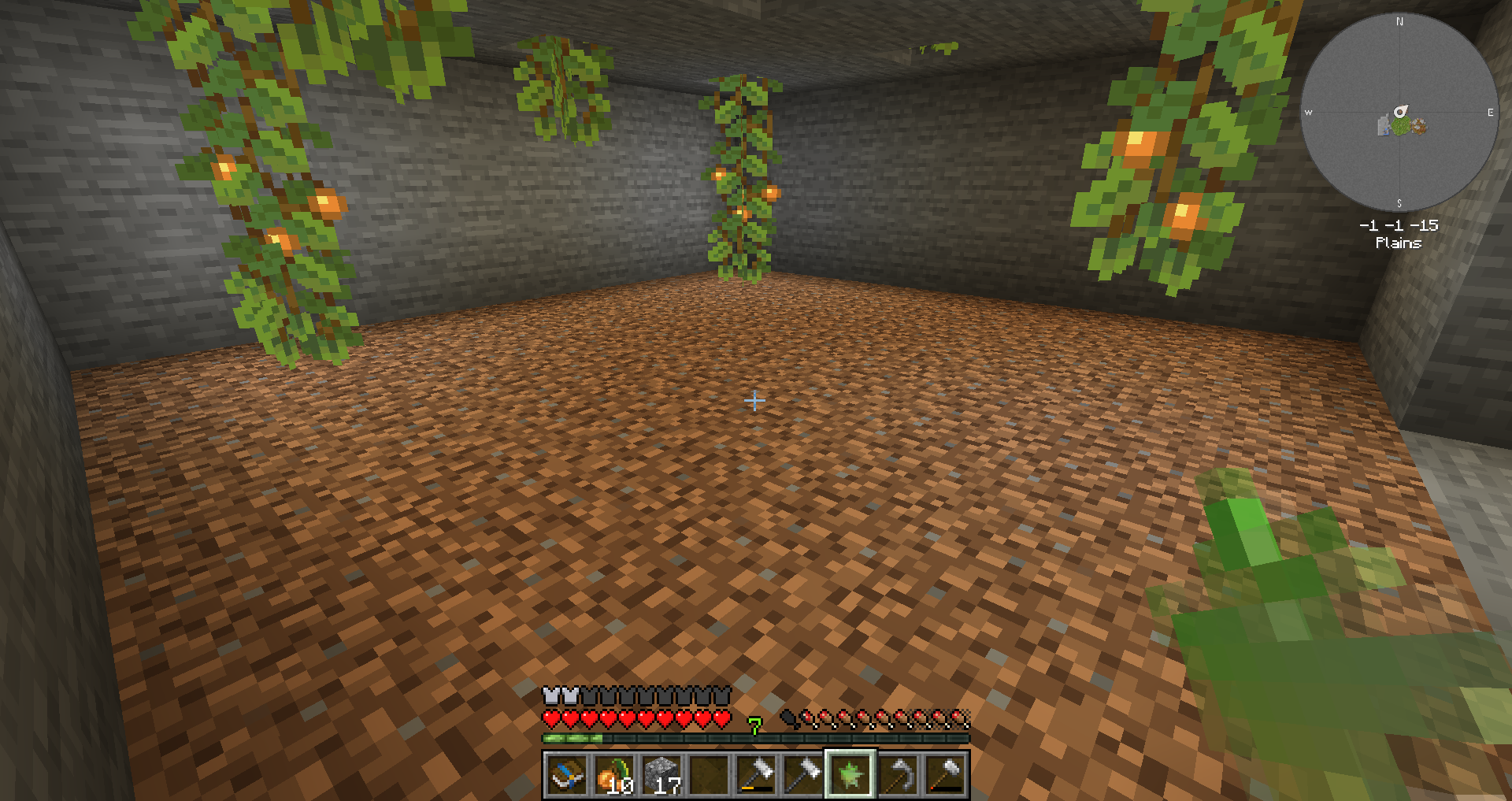Botania모드의 비료를 사용하여 신비한 꽃을 생성시켰습니다. 당장 필요한 빨강/초록/노랑/검정 꽃을 찾은 후 깔대기 식물 화분에 10개 가량 재배하겠습니다.