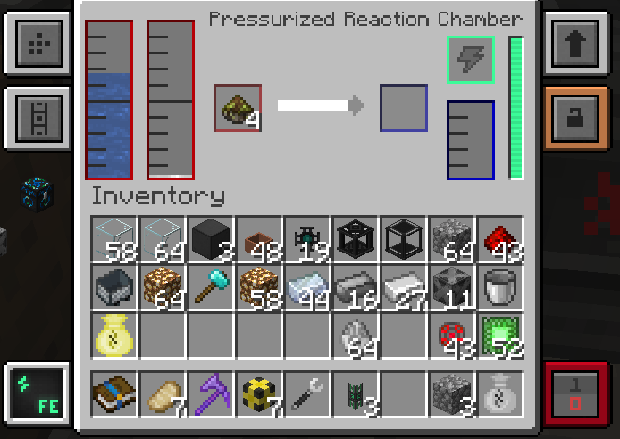 에너지 주입 오브에 전력을 주입할 물질을 우클릭하여 넣으면, 에너지 주입봉에서 오브에 전력을 공급하여 물질을 만들어냅니다.