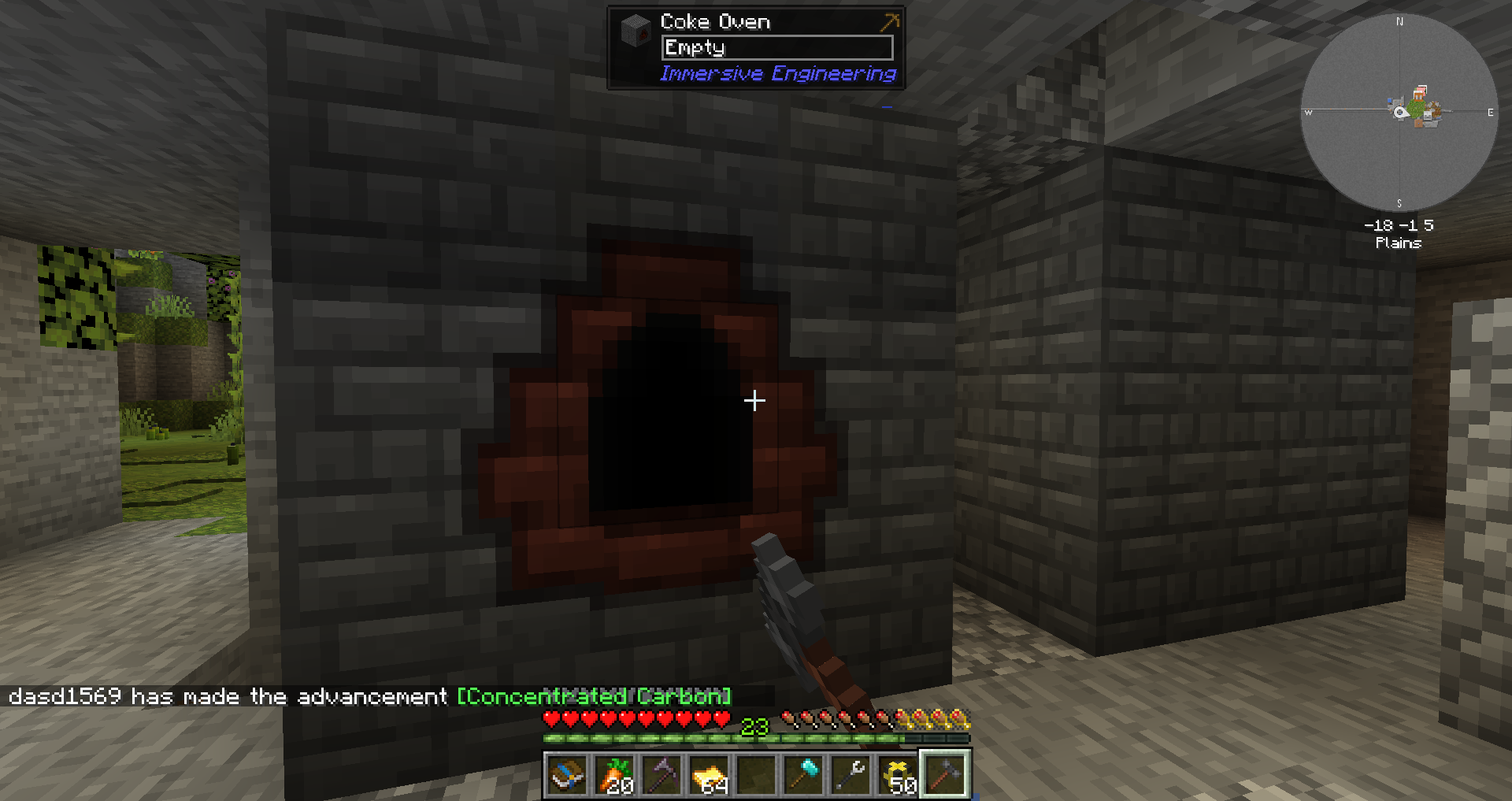 3x3x3으로 코크스 벽돌을 쌓고, 한 면에 엔지니어 망치를 우클릭하여 코스스 오븐으로 변환시켰습니다.