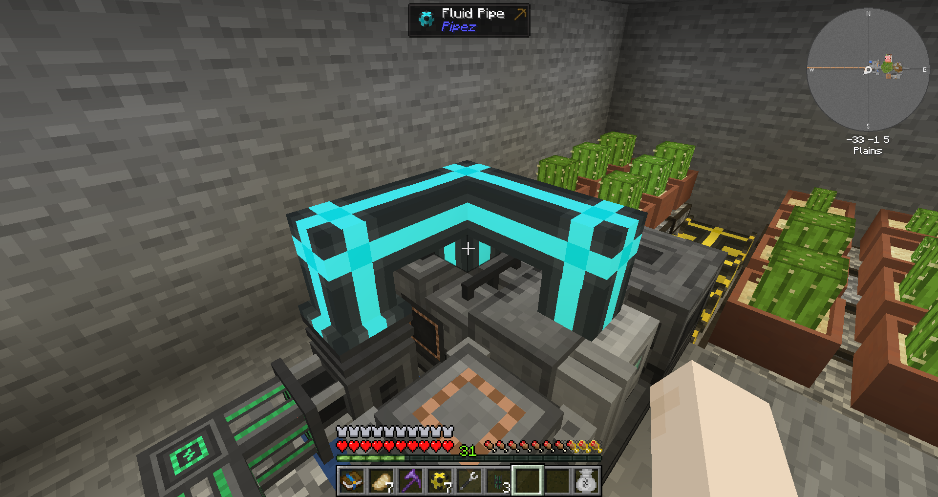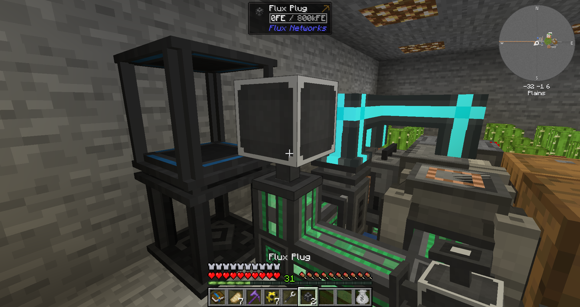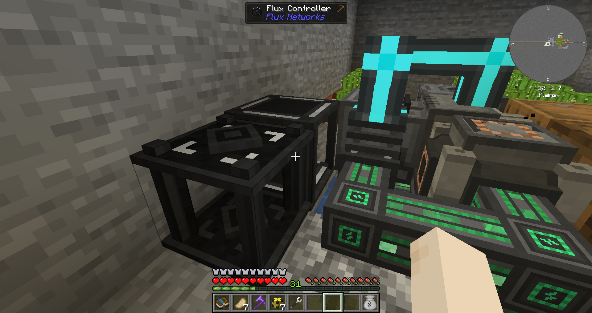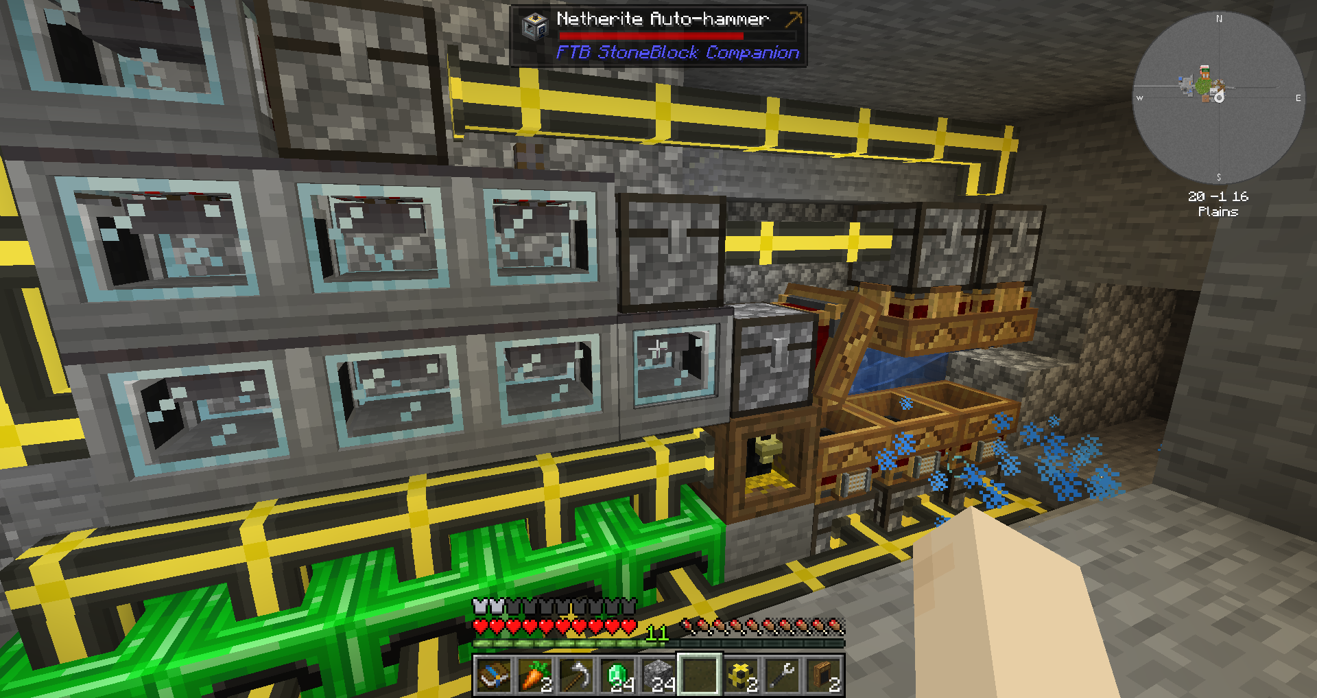 주요 자원에 대해 연결을 마친 상태입니다. 다이아몬드 및 네더라이트가 순식간에 몇 천개나 모여있습니다.