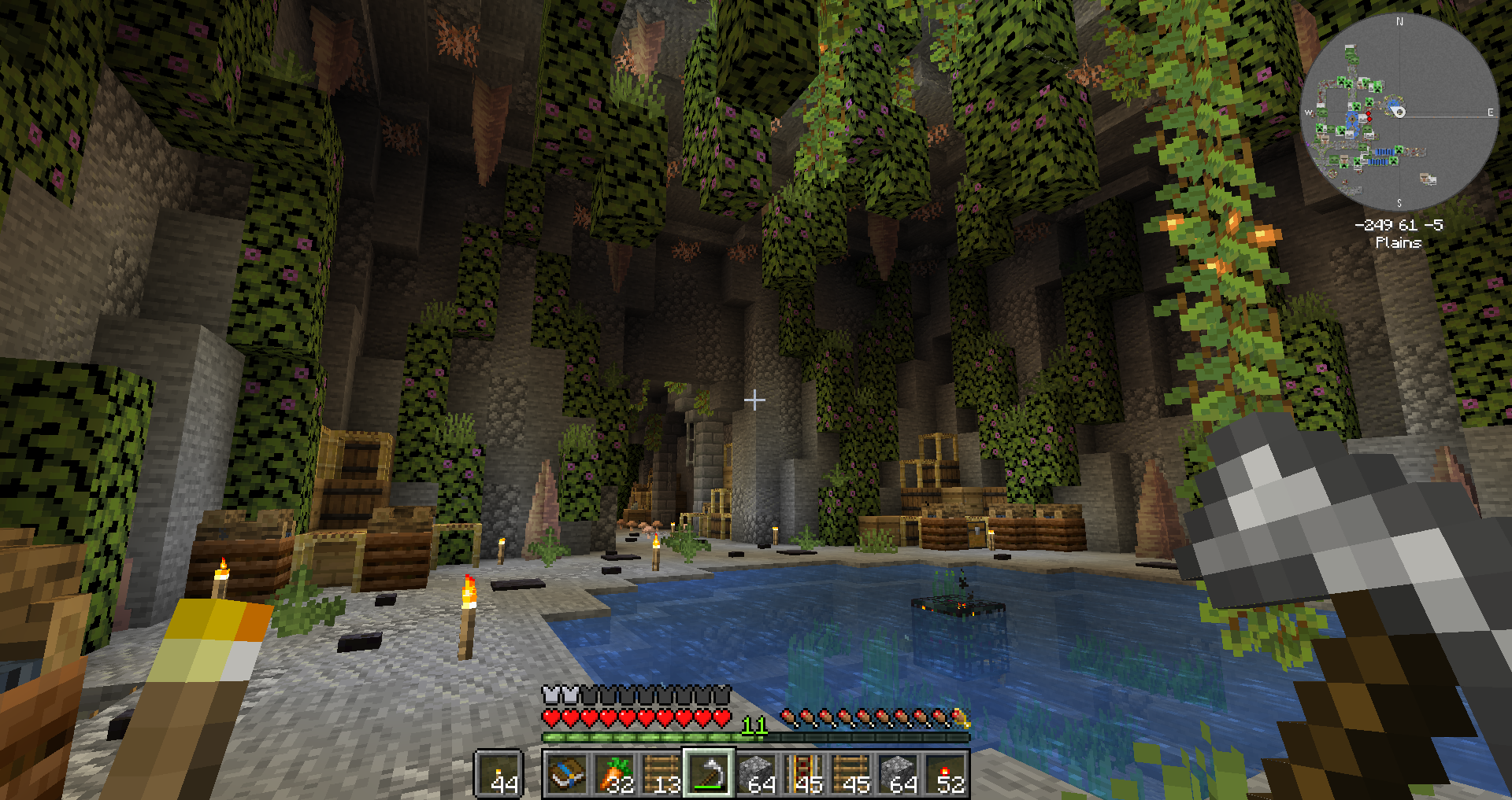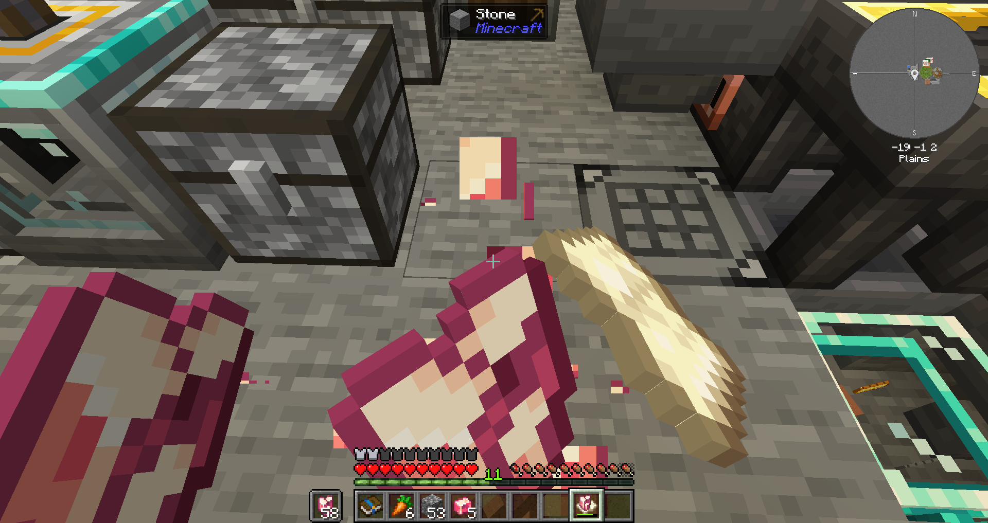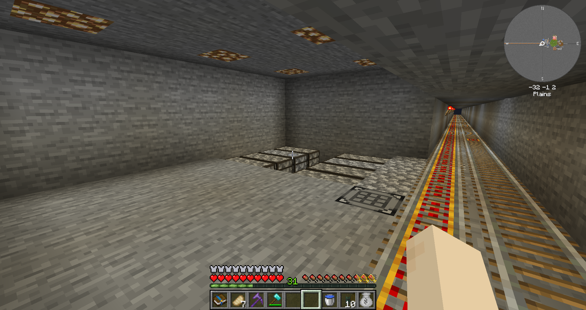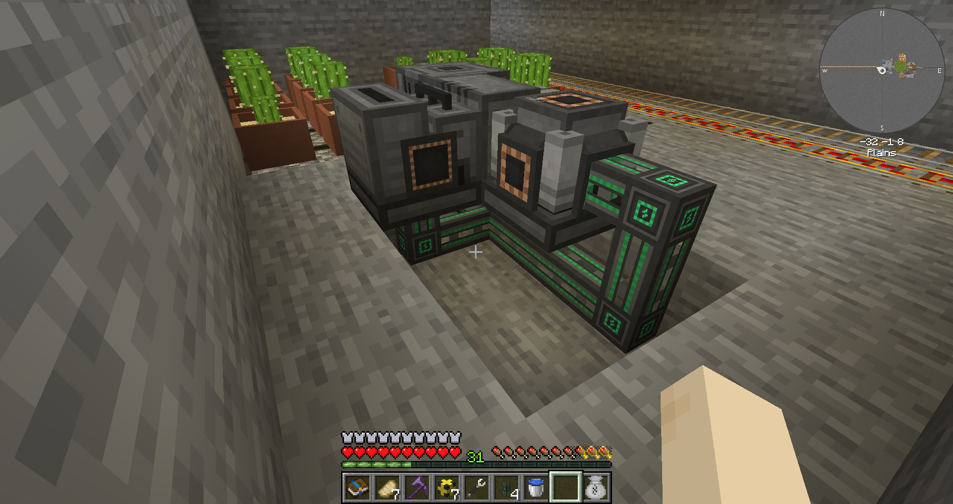 주요 자원에 대해 연결을 마친 상태입니다. 다이아몬드 및 네더라이트가 순식간에 몇 천개나 모여있습니다.