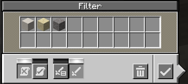 필터에 자갈, 모래, Dust를 넣고 좌측 Deny-list[해당 블럭은 통과 X (블랙리스트)]로 지정하겠습니다.
