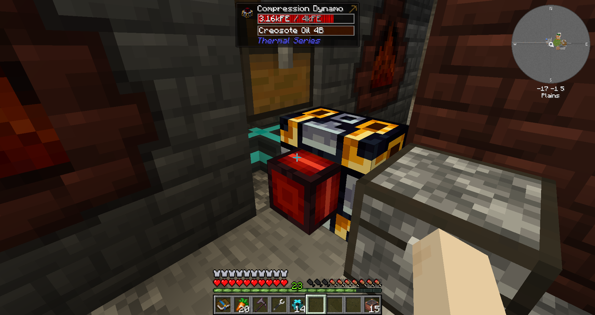 용광로에서 가져온 용암 닭을 이용해 용암 발전기를 달아주었습니다.