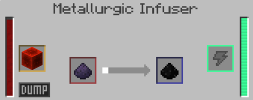 분쇄기에 흑요석을 넣어 흑요석 가루x4 를 얻어내고, 주입기 좌측에 레드스톤을 넣어 흑요석 가루에 주입시키면 자기 가루가 나옵니다.