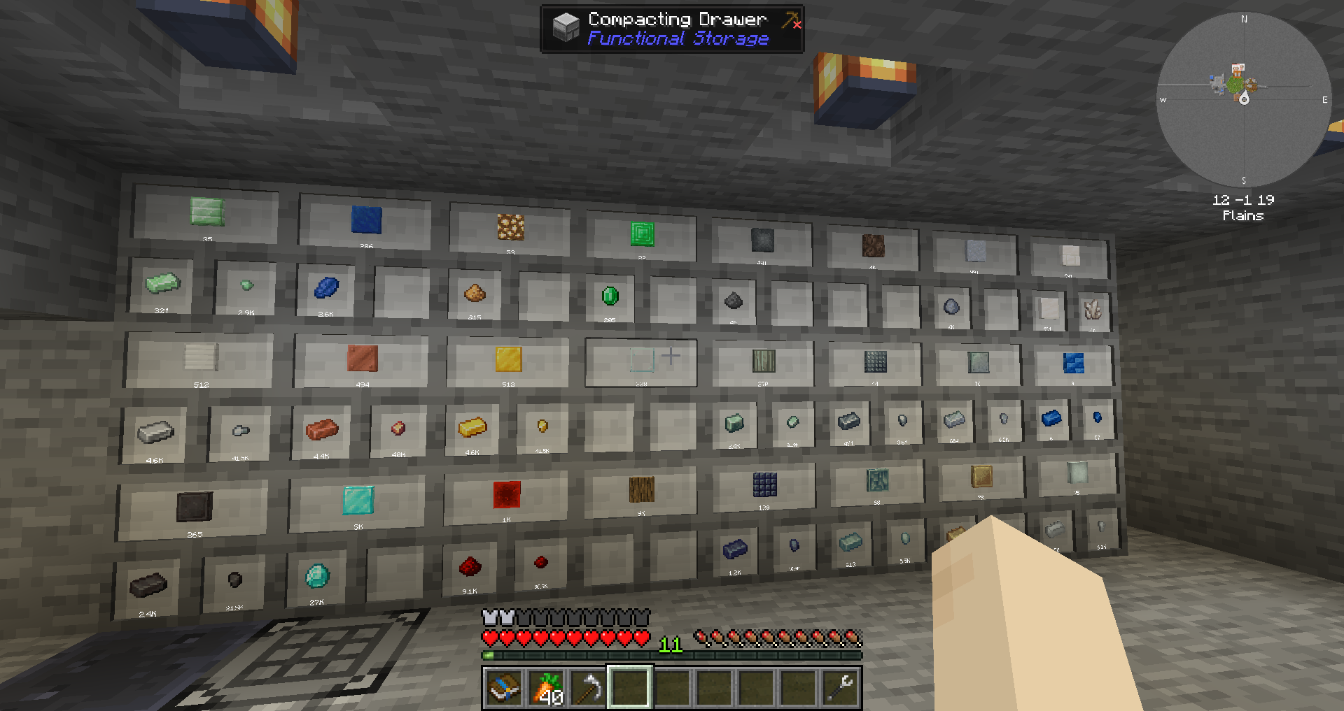 기본 Drawer는 총 2,048개의 단일 아이템을 저장할 수 있으며, 1x2 서랍은 2 종류의 아이템 1,024개를 / 2x2 서랍은 4 종류의 아이템을 524개 저장할 수 있습니다.
