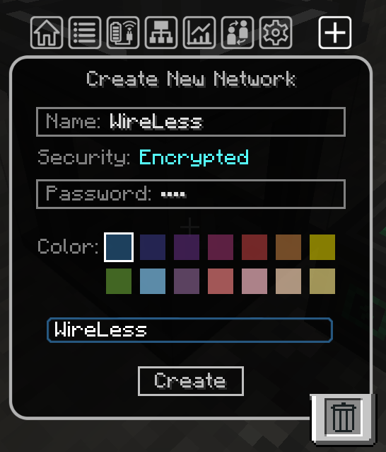 제 네트워크 (WireLess)를 입력하면 해당 네트워크 색상으로 테두리가 변하며, 자기 저장소에 전력이 저장되기 시작합니다.