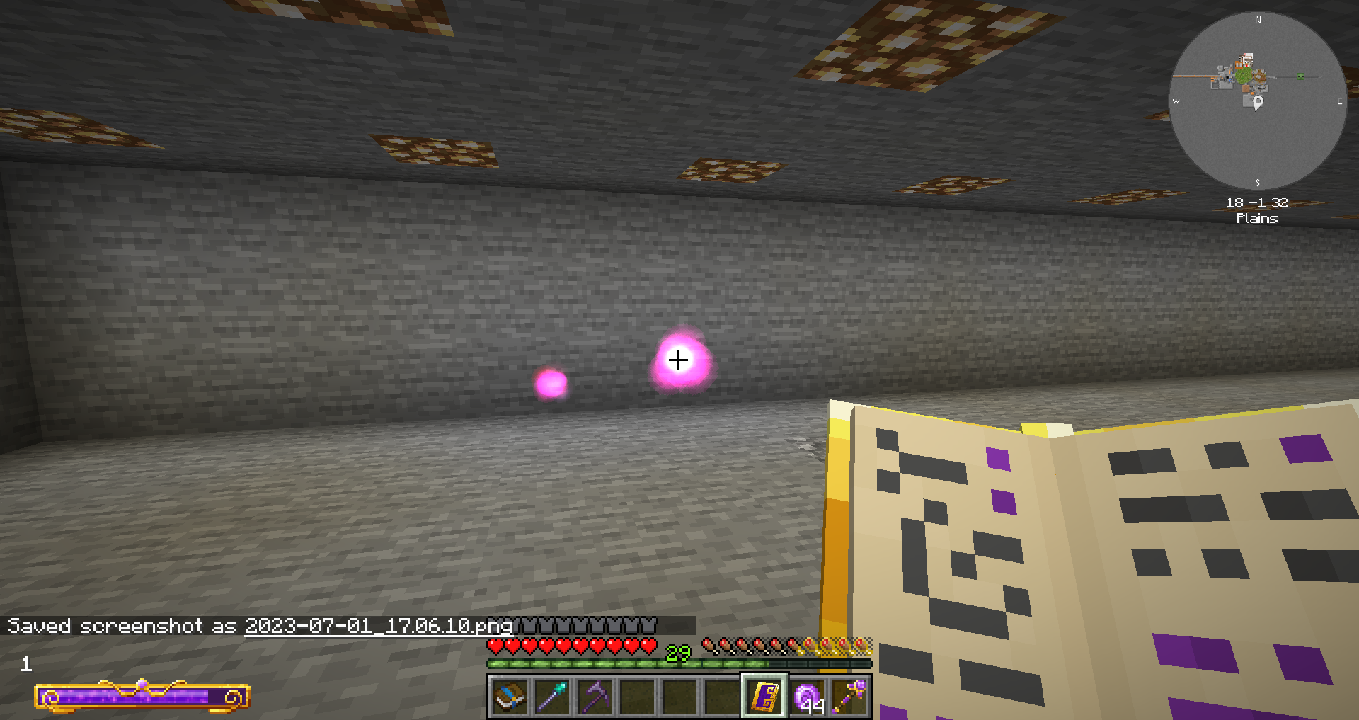 마법 책을 들고 우클릭하면 위와 같은 발광구가 투척되며, 블럭에 닿아 고정됩니다.