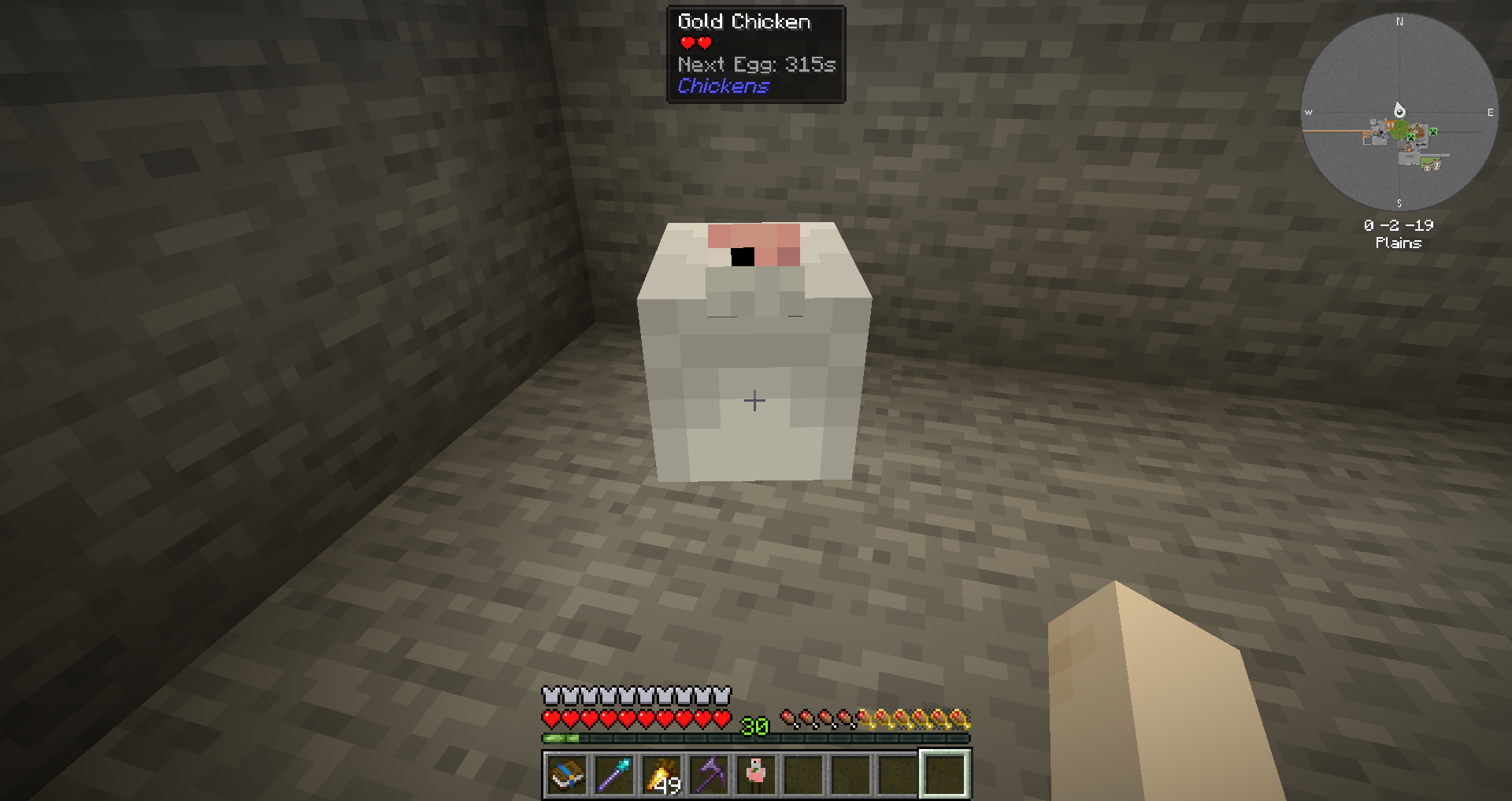 영양 닭 사료를 아무 닭에게나 우클릭 해주면, 닭이 부풀어오르며 터지며 황금 알을 드롭합니다.