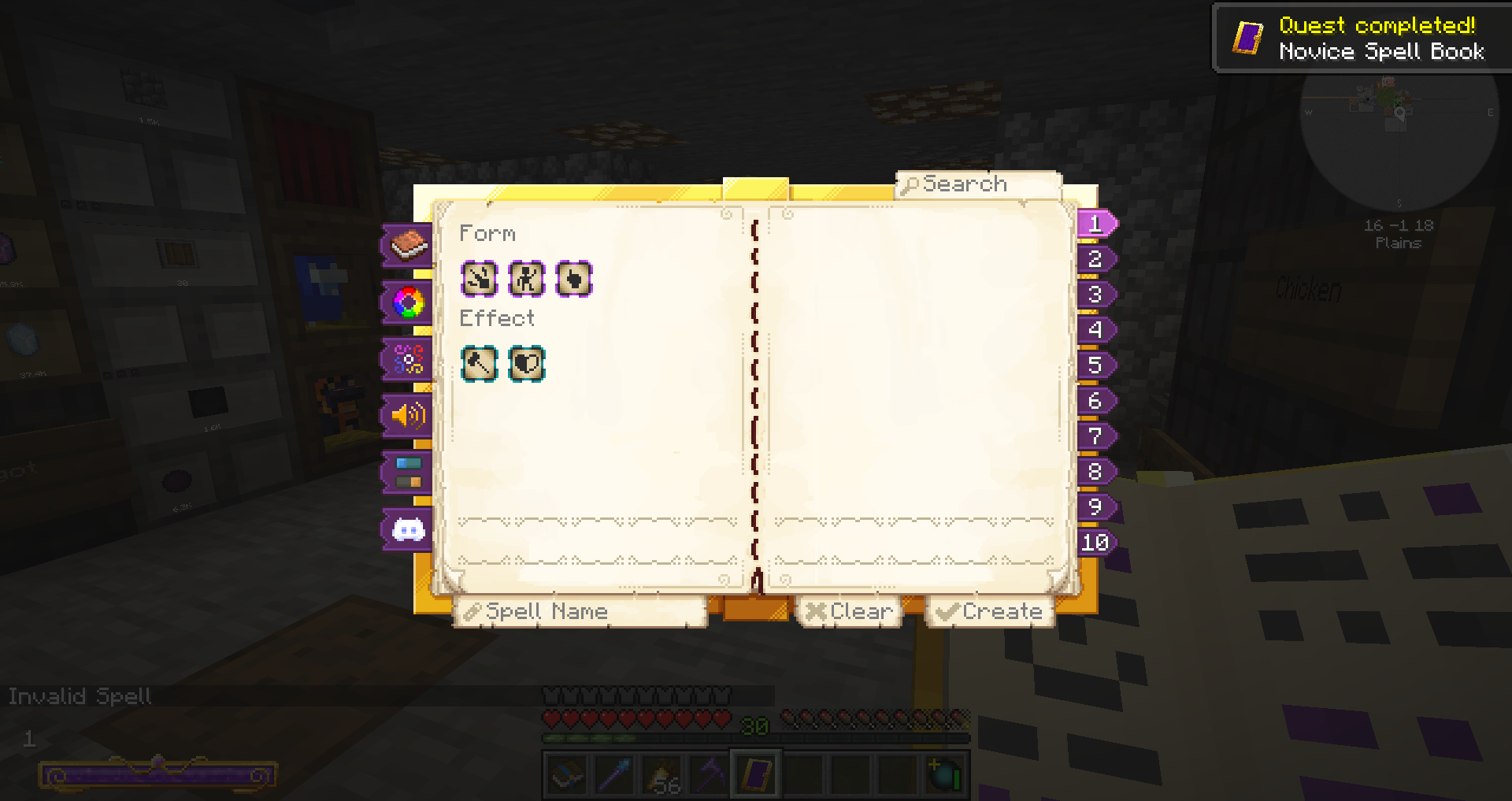 마법책을 들고 상형 기록 책상을 우클릭, 원하는 마법을 클릭하여 하단 Select 버튼을 눌러줍니다.