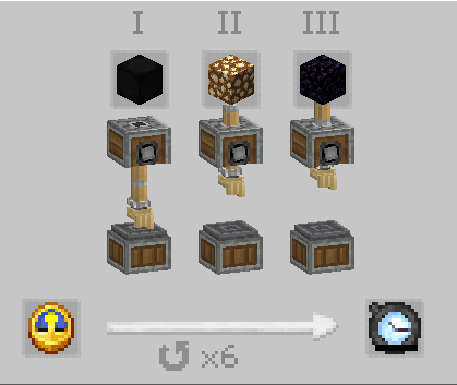 암흑 물질 받침대에 시간의 시계를 우클릭 및 활성화(우클릭)하면, 성장 및 재련 속도가 매우 큰 폭으로 증가합니다.