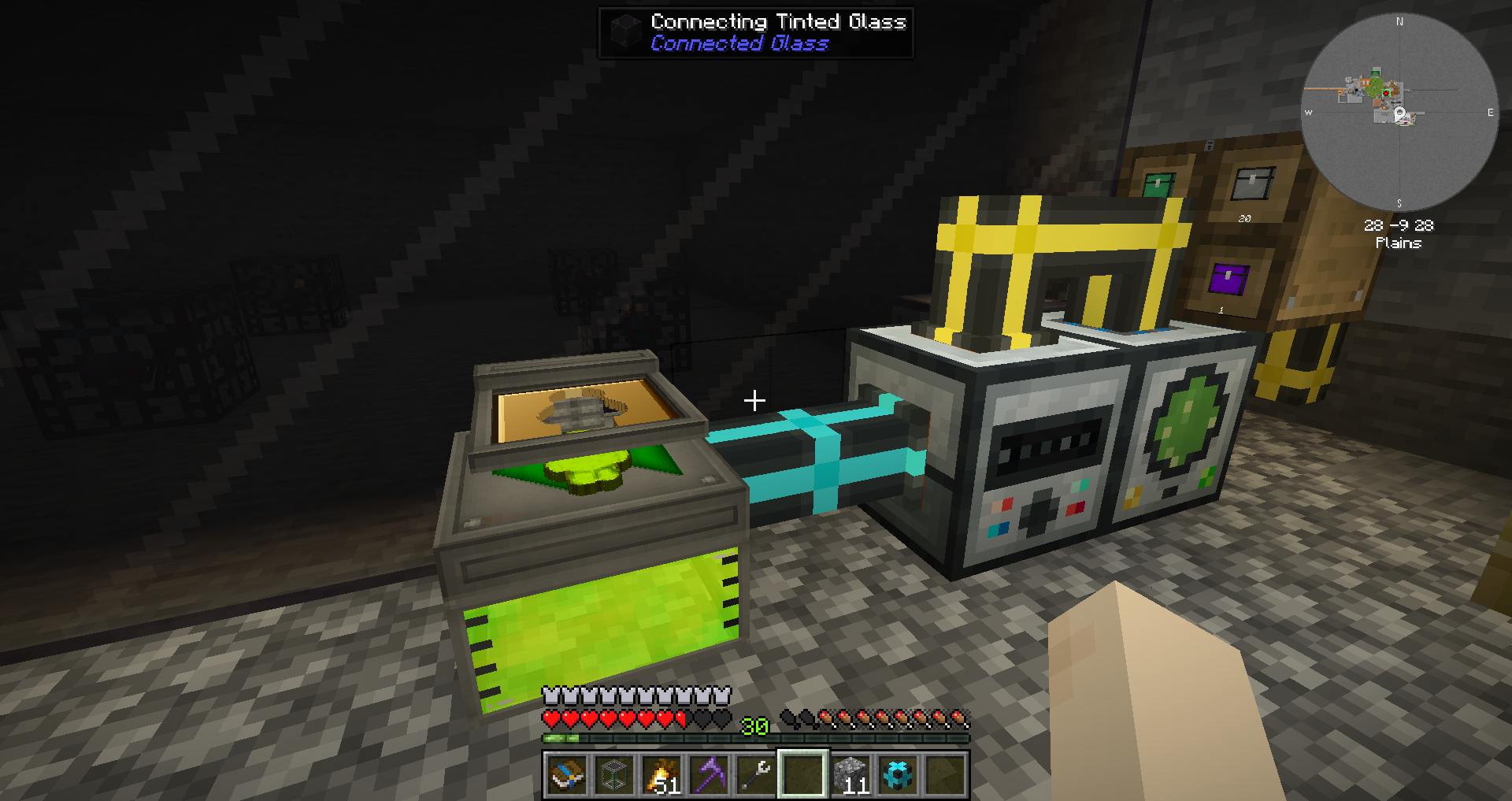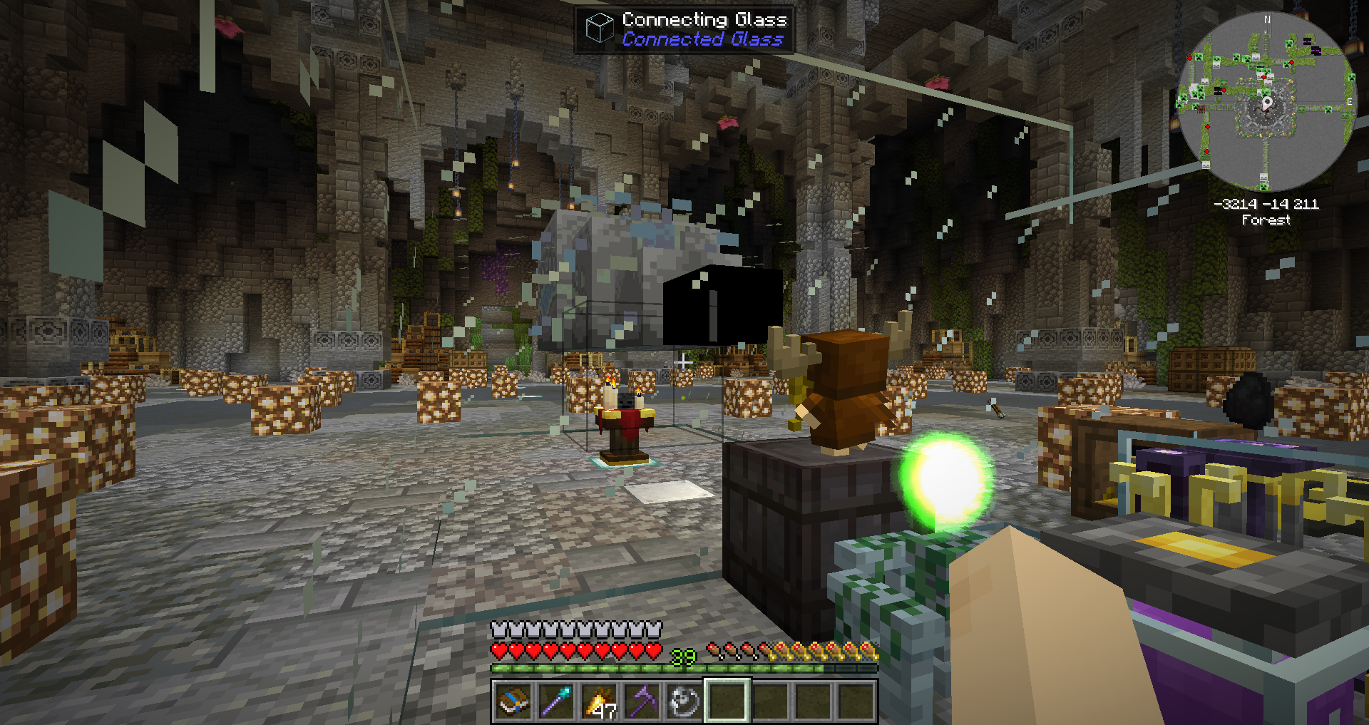 몹 도살기를 설치한 후, 도살기가 지원해주는 영역 내에 몹 스포너를 설치해 주었습니다.