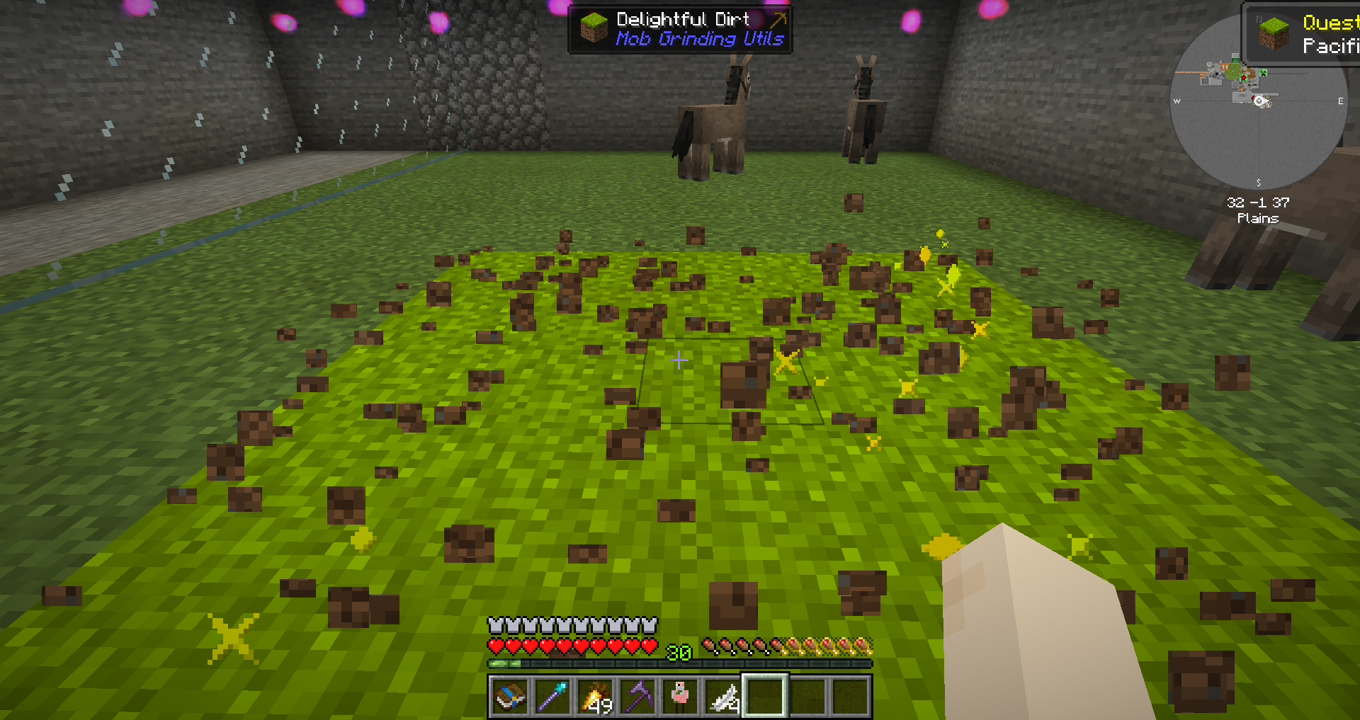 이후 잔디 블록에 우클릭 해주면 5x5 공간의 기쁨의 흙 Delightful Dirt이 생성되며, 해당 부근의 동물 스폰율이 대폭 증가합니다.