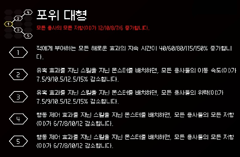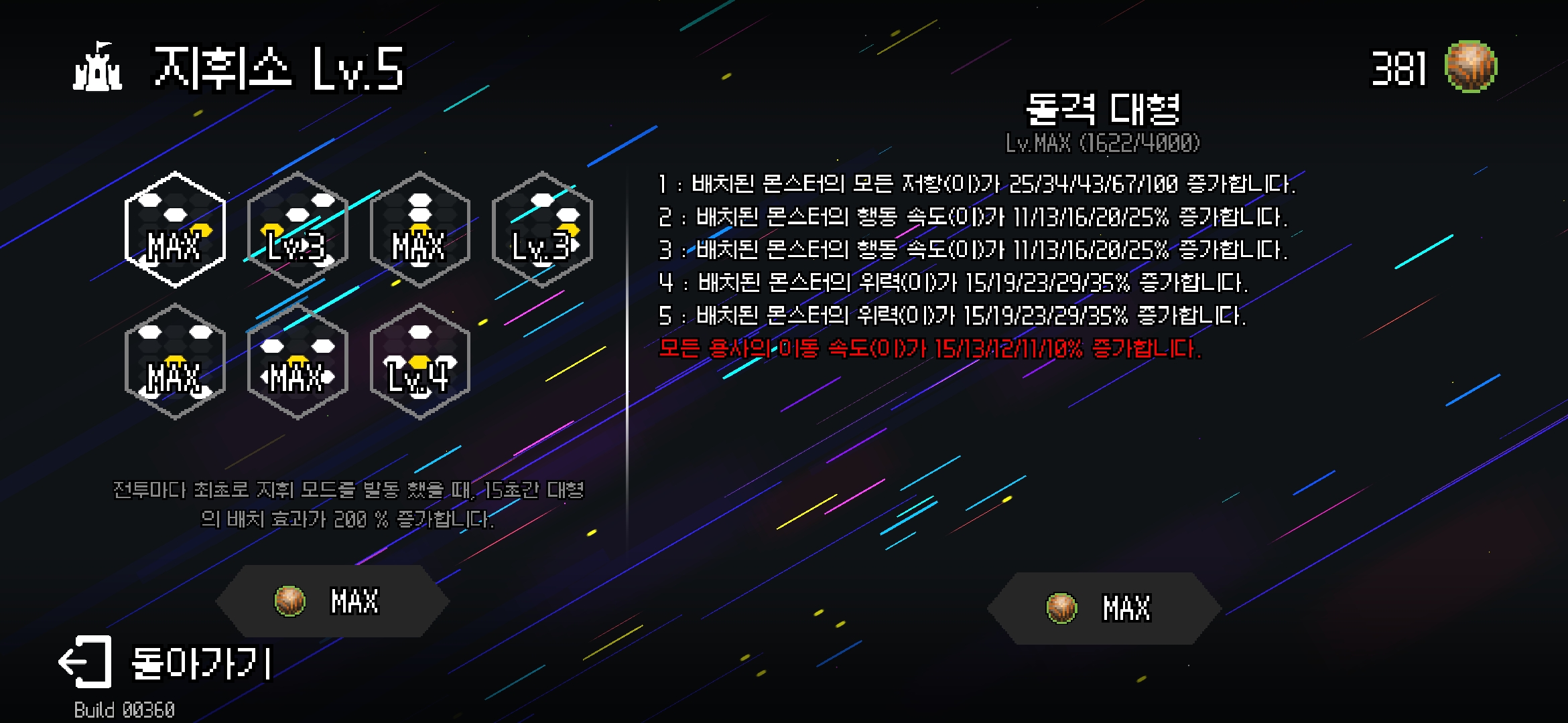 | 지휘소 강화 | 4회 : 10 > 25 > 40 > 60 |